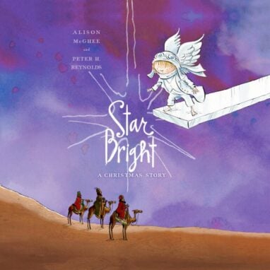 The angels are aflutter: a baby is soon to be born! One small angel can tell this baby is especially special. And holy moly, are their presents extraordinary. The little angel wants to give a present too, but, what could she possibly offer that is as worthy as the others’ gifts? At a loss for ideas, she peeks over the side of her platform and spies something going on in the desert – a caravan of kings on camels, lost in the dark. She does the only thing she can, and it ends up being the perfect gift for that little baby…the shiningest gift of all.