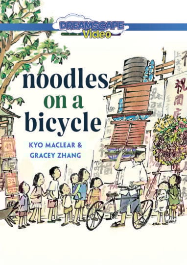 A vibrant historical children’s book about Tokyo’s bicycle food deliverers, or demae, who balanced towering trays of steaming hot noodles on their shoulders while navigating crowded city streets.